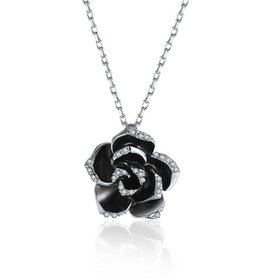 Romantic Platinum Plated Rhinestone Necklace black rose flower pendants fine gift for girl TGGPN381