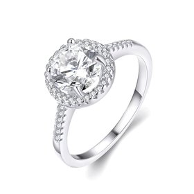Engagement platinum Finger Ring for Women white Big round Stone Zirconia Rings Statement Fine Jewelry Female Gifts TGCZR453